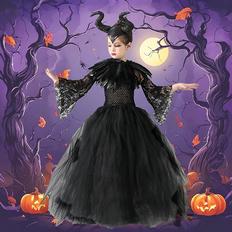 More information about Kids Girls' Cosplay Dress Cosplay Custome Party Dress Solid Color Long Sleeve Performance Party Halloween Party Mesh Gothic Halloween Custome Polyester Maxi Party Dress Swing Dress Tulle Dress Summer