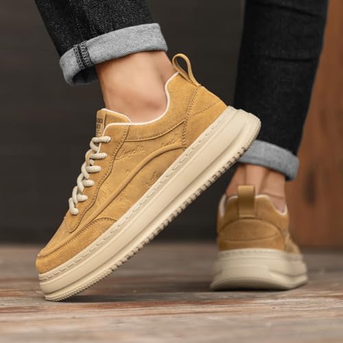 Men's Leather Lace-Up Sneakers Comfort Walking Shoes Cushioned Sole Elevator Shoes for Men Casual Skate 6