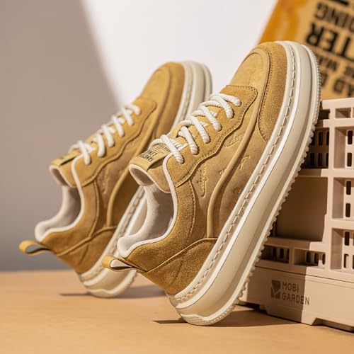 Men's Leather Lace-Up Sneakers Comfort Walking Shoes Cushioned Sole Elevator Shoes for Men Casual Skate 7