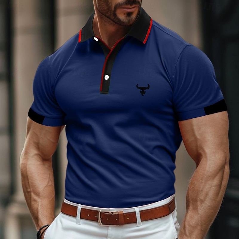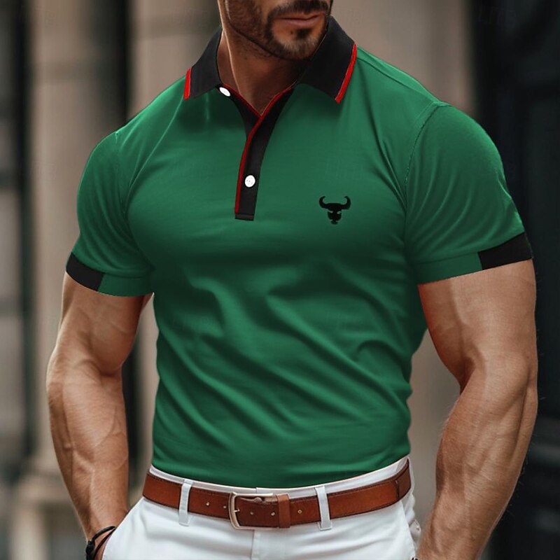 More information about Men's Cotton Blend Polo Shirt Golf Shirt Casual Sports Ribbed Polo Collar Short Sleeve Fashion Basic Color Block Cow Patchwork Embroidered Summer Regular Fit Yellow Red Blue Green Cotton Blend Polo