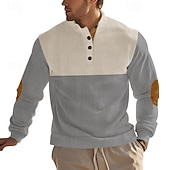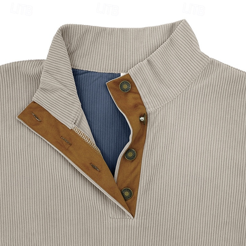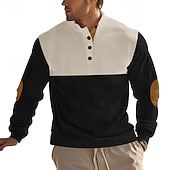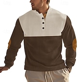 Highlights [Fabric] : Crafted from a durable blend of polyester and corduroy, this men's sweatshirt offers a soft and comfortable feel with micro-elastic flexibility. The ribbed knit structure ensures both warmth and ease of movement, making it suitable for transitional seasons like spring and fall. [Fit] : With a regular fit, this sweatshirt allows for comfortable layering over shirts or under jackets, accommodating a variety of outfits without compromising on style or comfort. [Design Highlights] : This sweatshirt features a modern color block pattern in an array of shades including navy blue, gray, black, red, and brown. The stand collar and button-up placket add a touch of sophistication, while the tan elbow patch accents offer a fashionable, durable twist. [Occasions] : Perfect for a range of activities, from casual outings and daily wear to sports and outdoor adventures. This versatile piece effortlessly transitions from holiday gatherings to casual streetwear settings, providing style and practicality. [Size Range] : Available in sizes from S to 3XL, ensuring a comfortable fit for various body types and preferences.