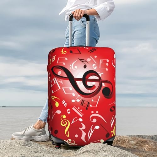 HOT ! Music Notes on red background Luggage Cover Elastic Suitcase Covers for Protector Suitcase Sleeve for Luggage 18-32 In