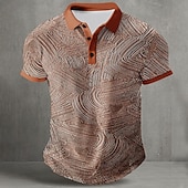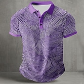 More information about Men's Geometic Line Polo Short Sleeve Polo Shirts Collared Shirts Abstract Casual Street Athleisure Daily Wear Buttons Summer Blue Purple Orange