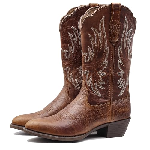 • 100% Full-Grain Leather – Built for Comfort: These women’s cowboy boots are crafted from premium full-grain leather that softens and molds to your legs. A breathable sheepskin-lined shaft and no-break-in fit offer instant comfort and timeless style, while the leather develops a unique patina with wear