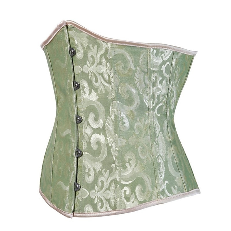 Women's Lace Up Boned Underbust Corset  Jacquard Brocade Waist Training Bustier Lingerie Rococo Retro Vintage 19
