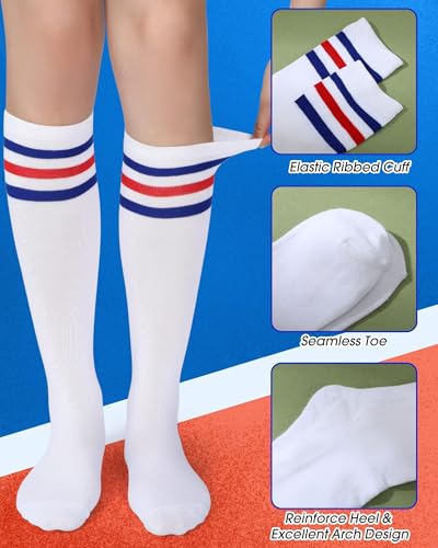 Syhood 2 Pairs Classic Athletic Knee High Socks Triple Stripes Over the Calf Cotton Retro Tube Sock 4