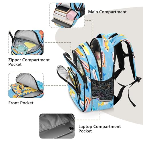 15 Inch Backpack for School Boys Girls, Elementary Kids Backpack, Colorful Cartoon Sharks Blue 7