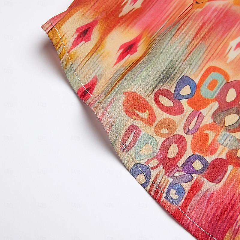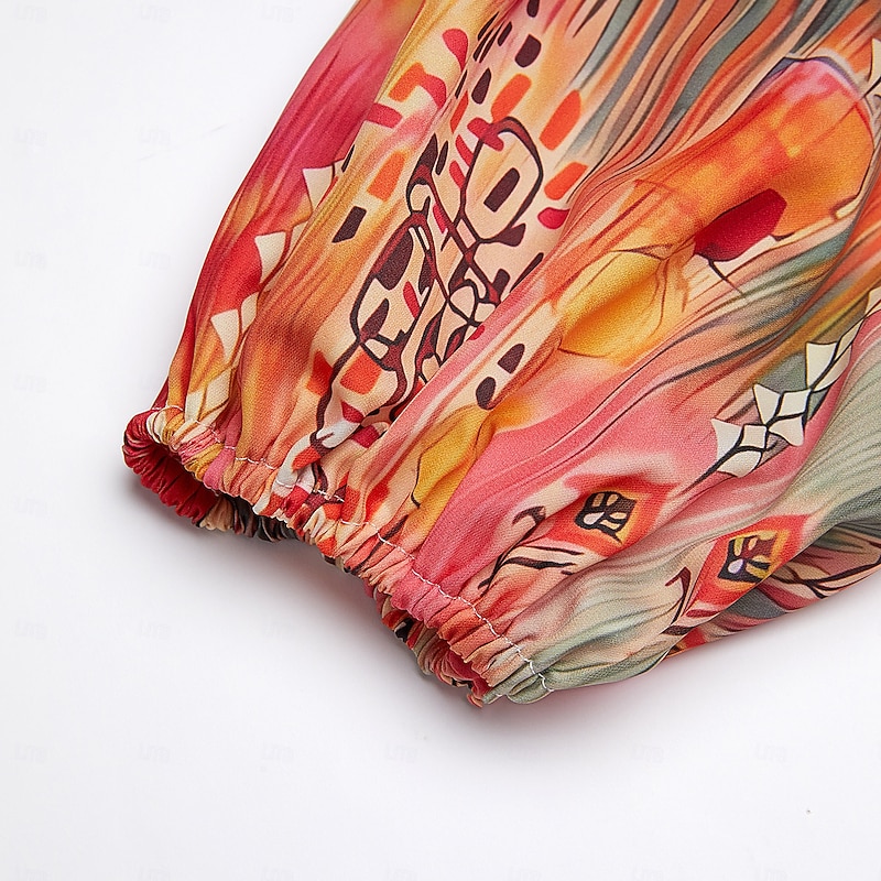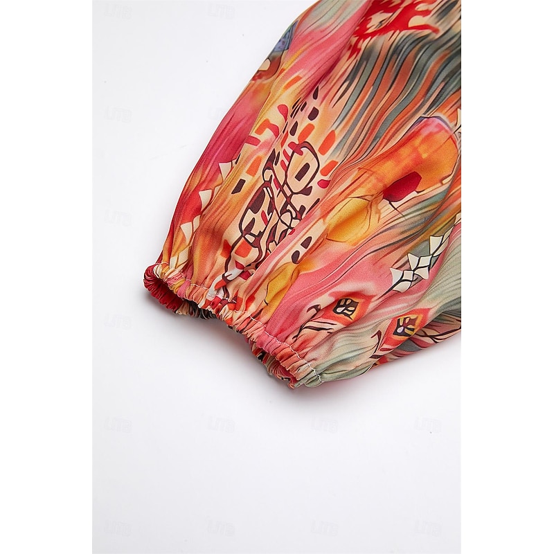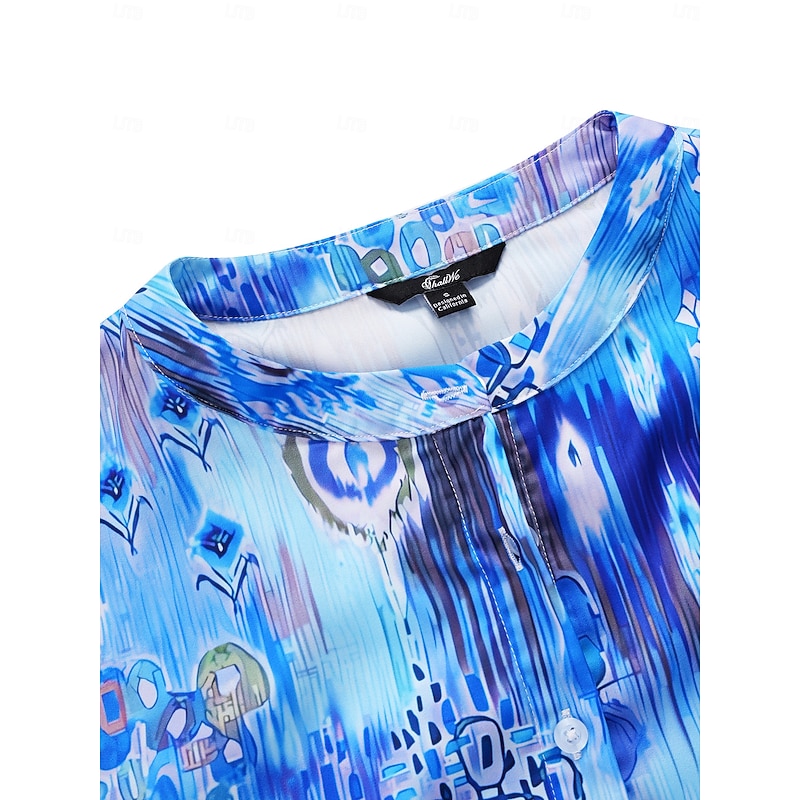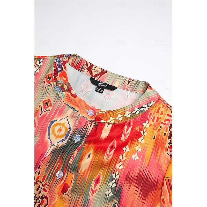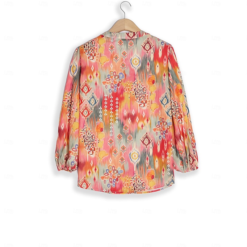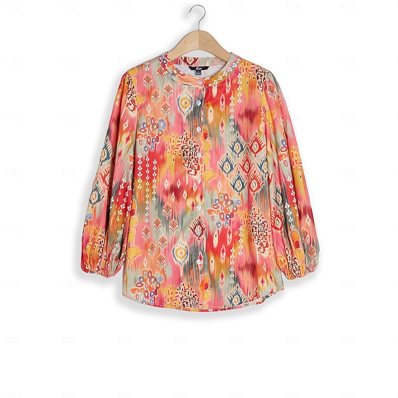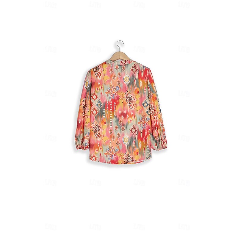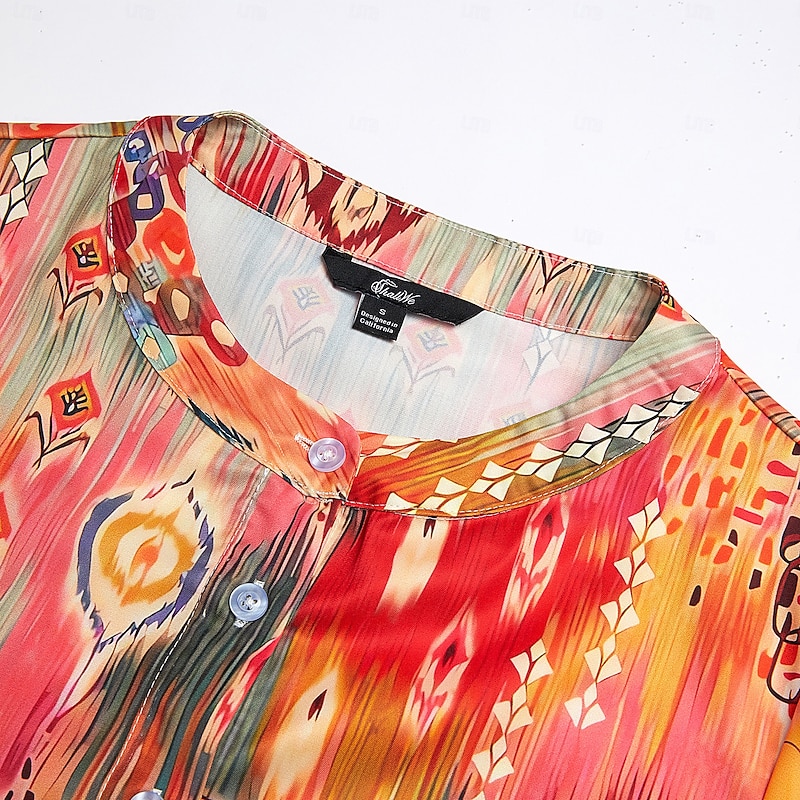 Highlights [Fabric & Fit] : Crafted from lightweight polyester, this women's blouse offers a micro-elastic fit that balances comfort and style. The fabric is breathable, making it ideal for both spring and fall seasons. [Design Highlights] : Featuring a vibrant geometric print, this blouse comes in shades of pink, blue, and green. The standout elements include a button-down front and a versatile standing collar, complemented by a V-neckline for added elegance. The sleeves are designed to be long and generously cut, ensuring a relaxed yet chic look. [Occasions] : Perfect for casual outings or everyday wear, this blouse pairs effortlessly with jeans and skirts. Whether you're heading to a weekend gathering or a casual day out, it provides a stylish and effortless appeal. [Size Range] : Available in a variety of sizes, including S, M, L, XL, and 2XL, this blouse accommodates a wide range of body types, ensuring the ideal fit for different preferences. [Care Instructions] : Easy to care for with options for machine washing, wet and dry cleaning, making it a practical addition to your wardrobe.