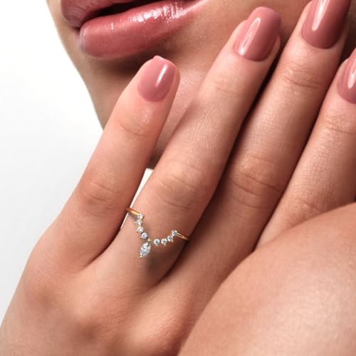0.26 Ct Marquise Cut Diamond Dainty Minimalist Stackable Tiara Crown Chevron Eye Solid 14K Yellow Gold Everyday Wedding Band 5