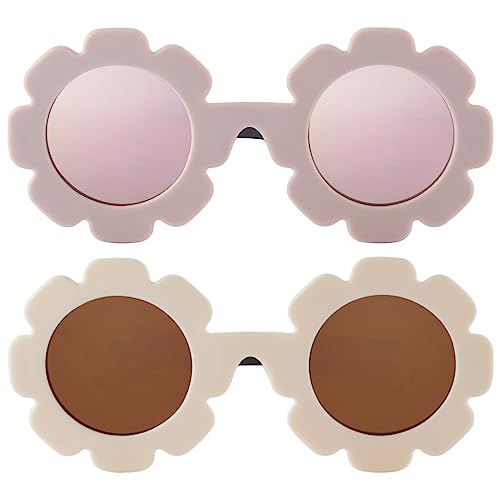 2 Pieces Flexible Round Flower Polarized Baby Sunglasses with Adjustable Strap for Infant Girls Boys Age 0-24 Months 1
