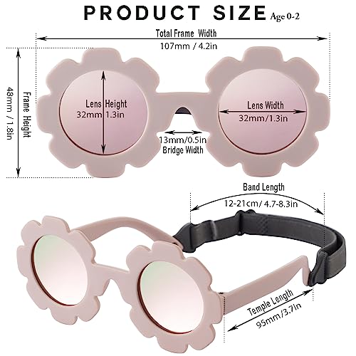 2 Pieces Flexible Round Flower Polarized Baby Sunglasses with Adjustable Strap for Infant Girls Boys Age 0-24 Months 5