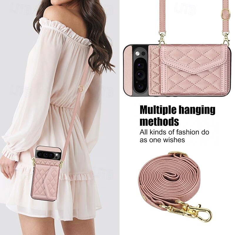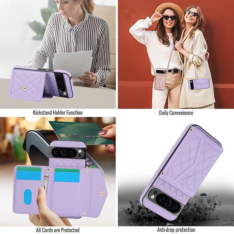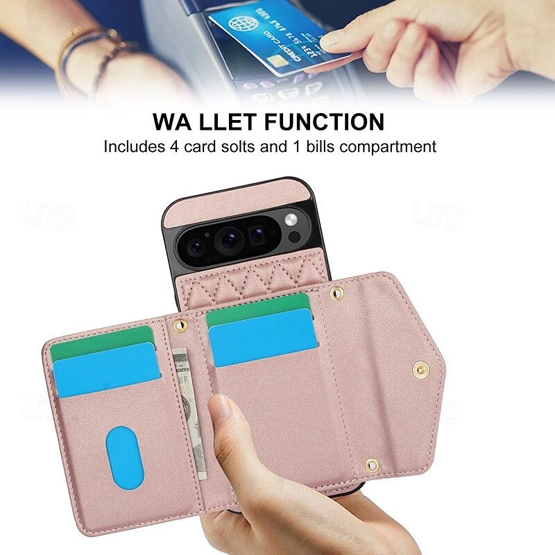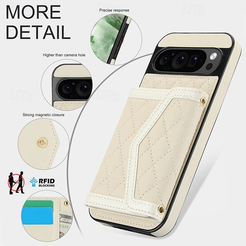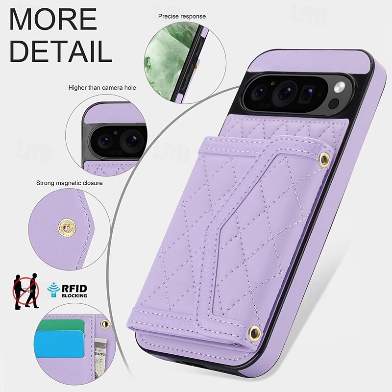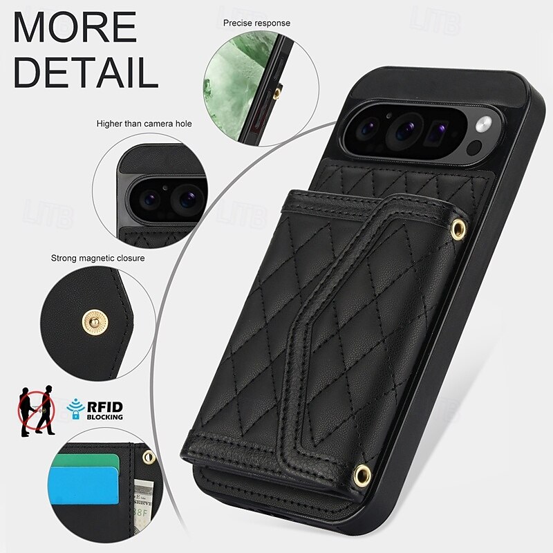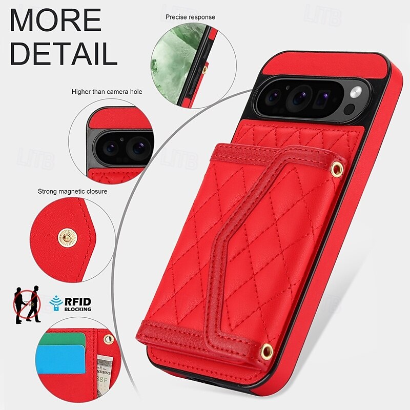 More information about Phone Case For Google Pixel 9 Pro Pixel 9 Pro XL Pixel 8 Pro Pixel 8 Pixel 9 Back Cover with Stand Holder with Lanyard Card Slot Retro TPU PU Leather