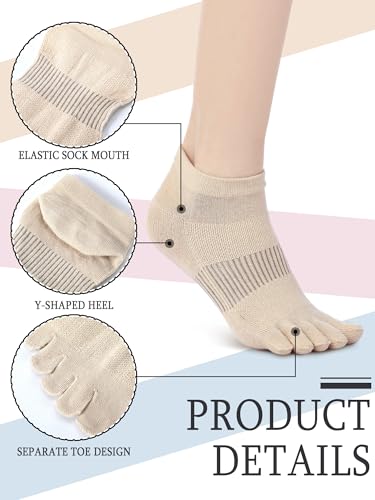 Bencailor 8 Pairs Women Toe Socks Cotton No Show Anklelow Cut Socks with Five Toes for Women Men Athletic Running Supplies Lightweight and Breathable 3