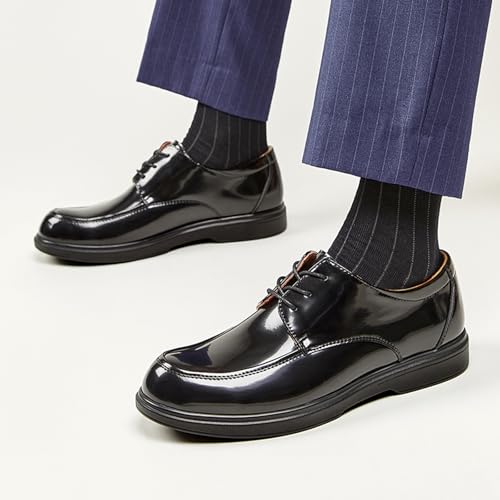 Men's Bright Genuine Leather Dress Oxfords Shoes Fashion Patent Leather Round Toe Lace Up Low Top Derby Shoes Casual Business Office Wedding Formal Shoes 6