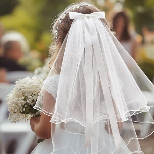 More information about Vividsun 3 Pcs First Communion Veils Set for Girls Bow Gloves Lace Veils Communion Hair Accessories