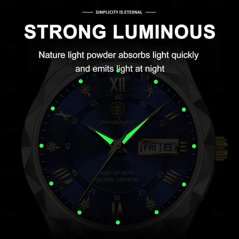 Luxury Men's Quartz Watch Waterproof Stainless Steel Luminous Dial Business Calendar Wristwatch 11