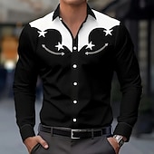 More information about Men's Star Shirt Western Shirt Cowboy Shirt Long Sleeve Vintage Retro Outdoor Vacation Spring Fall Turndown 3D Print Linen Like Shirt Black 1 Black