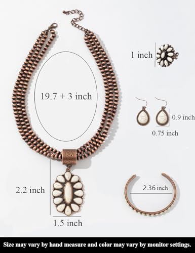• 【DURABLE AND COMFORTABLE】 Western necklace and earring set, made of fade-resistant plastic beads, and corrosion-treated metal components. Turquoise stones are securely set to prevent accidental detachment during daily wear.