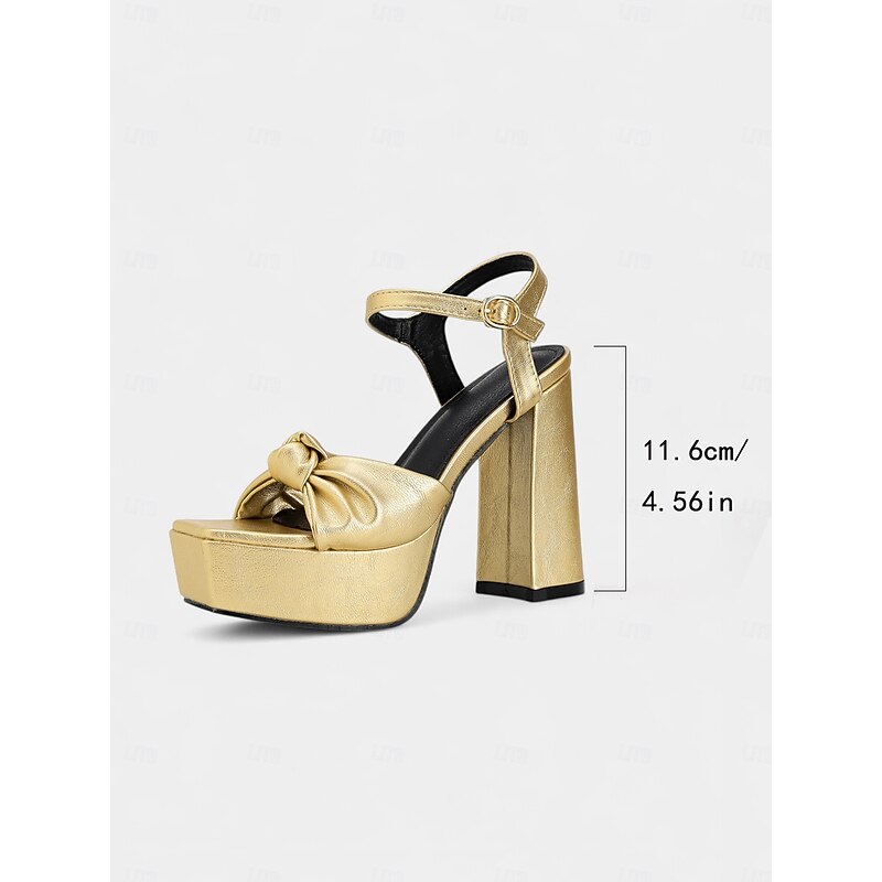 Women's Gold Platform High Heel Sandals - Chunky Block Heels with Ankle Strap for Nightlife, Clubbing and Party Outfits 1
