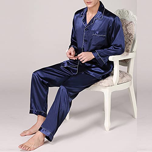 HOT ! Men's Satin Pajama Set 2 Piece Long Sleeve Classic Sleepwear Button Down Homewear Loungewear with Long Pants