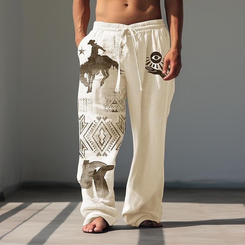 HOT ! Men's Cowboy Linen Pants Pants Trousers Baggy Pants Mid Waist Vintage Outdoor Daily Wear Streetwear Fall & Winter Black White Green