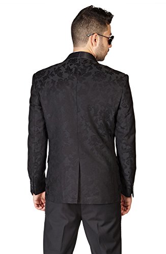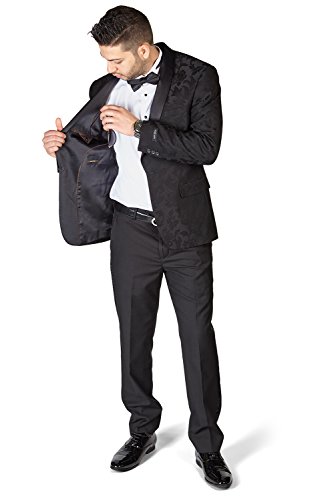 HOT ! Slim Fit 1 Button Shawl Satin Collar Floral Jacket Tuxedo Black Pants by AZAR 1714