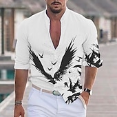 Highlights [Fabric] : Crafted from a high-quality polyester blend, this men's shirt offers lightweight and breathable comfort, perfect for warm weather. The fabric ensures durability while maintaining a soft touch against the skin. [Fit] : Designed in a regular fit, this shirt is tailored to provide a comfortable and flattering silhouette for men, ensuring ease of movement throughout the day. [Design Highlights] : Featuring a striking eagle print, this shirt incorporates a stand collar and a sleek button-down front. Its long sleeves are neatly cuffed, offering the option to roll them up for a more casual appearance. The unique asymmetrical pattern on one side adds an artistic flair, making it a standout piece. [Occasions] : Suitable for daily wear, casual outings, and outdoor activities, this shirt transitions effortlessly from streetwear to more polished settings. It's ideal for men seeking a balance between style and functionality. [Sizes] : Available in a range of sizes from S to 3XL, this shirt is designed to cater to a variety of body types, ensuring a comfortable fit for everyone.