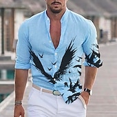More information about Men's Eagle Shirt Button Up Shirt Long Sleeve Fashion Streetwear Designer Outdoor Casual Daily Summer Spring Fall Stand Collar Print White Blue Dusty Blue Green