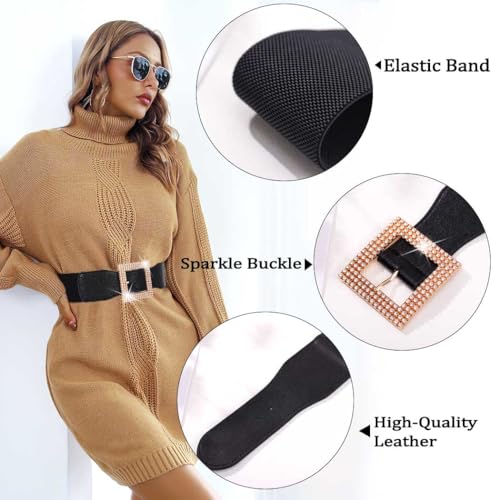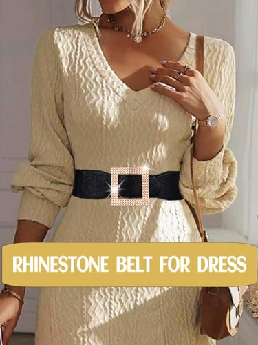 More information about Women Wide Elastic Waist Belt Rhinestone Wide Leather Belt for Ladies Fashion Stretchy Waistband for Dress