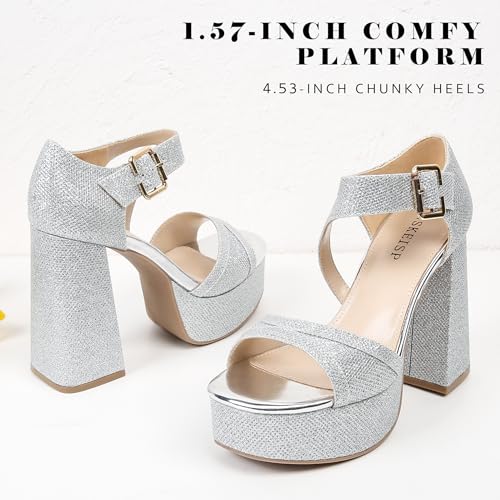 • VERSATILE STYLE: WSKEISP sparkly heels are the perfect addition to any outfit, from classic neutrals to bold eye-catching colors like: black heels, white heels, hot pink heels, sparkly gold heels and silver heels. You can easily match these platform sandals with jeans, shorts, T-shirts, skirts, dresses, etc.