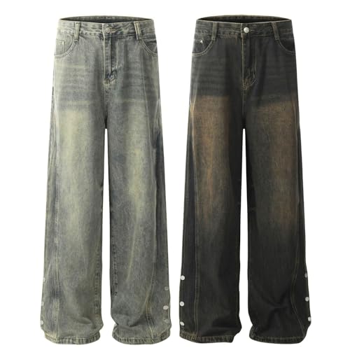 Jeans Pants Trousers Denim Retro Street Trendy Washed Blue Grinding White Straight Commuter for Men 1