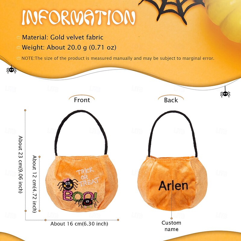 $12.99 - Personalized Name Halloween Pumpkin Treat Bag for Kids Custom Candy Tote Bag Basket for Trick or Treat, Magical Candy Tote with Embroidered Name, Large Capacity Non-Woven Sack for Halloween Party and Gifts 2025. Shop for cheap Halloween online? Buy at lightinthebox.com on sale today!