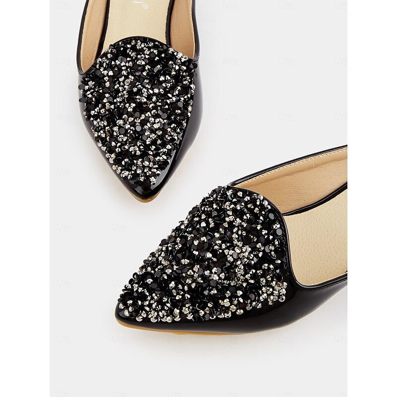 Women's Black Rhinestone Pointed Mules – Slide-On Flats with Crystal Embellishments for Stylish Daily Dates 6