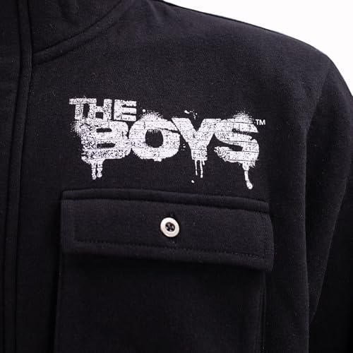 • ☑ SUPERHEROES MEET MODEN TREND: Whether you support the diabolical Homelander and Vought International or the cunning Billy Butcher and The Boys, our high-quality full zip jacket is perfect for any fan of the twisted comic book adaptation! With its embroidered patches, 5 cargo pockets, shoulder epaulettes, and jumbo graphic design, there is no better way to enjoy the hit Amazon Prime series and the battle of corrupt heroes versus defiant vigilantes than wearing this one-of-a-kind The Boys merch!
