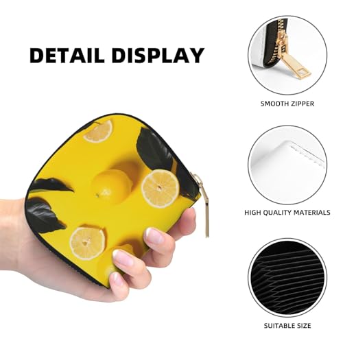 Yellow Lemon Print Printed Credit Card Wallet for Women Men Cute Zipper Card Cases Holder Mini Coin Purse with 12 Card Slots 5