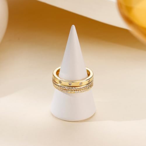 HAIAISO Stackable Gold Rings for Women Non Tarnish 14K Gold Plated Cubic Zirconia Rings Dainty Pinky Ring Set Size 5 to 10 6