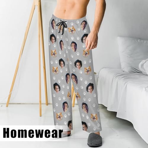 HOT ! Customized Gifts for Men Women - Custom Heart Funny Dog Cat Pajama Pants - Custom Valentines Mens PJ Pants with Face on Them