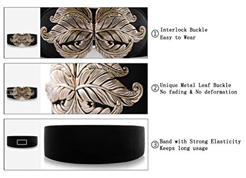 VOCHIC 2pcs Vintage Basic Stretchy Elastic Wide Waist Belt for Womens Dress Metal Interlock Buckle 4