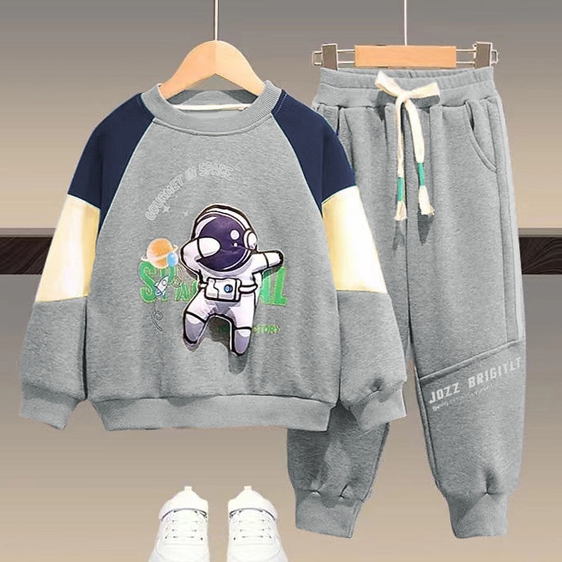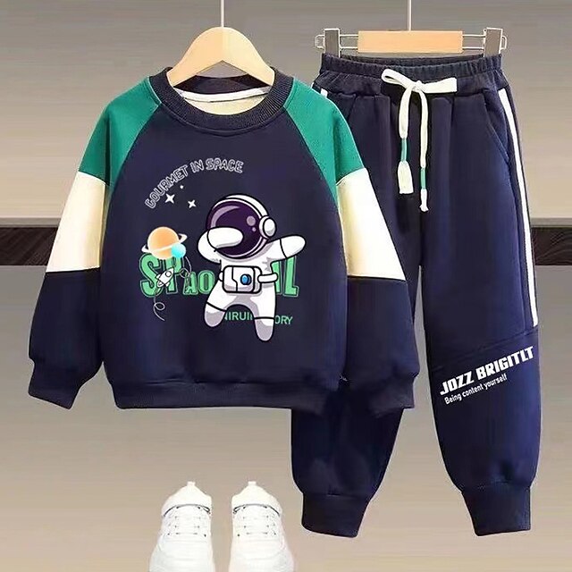 More information about 2 Pieces Kids Boys Hoodie & Pants Sweatshirt & Pants Clothing Set Outfit Color Block Letter Astronaut Long Sleeve Pocket Set School Sports Fashion Daily Fall Winter 7-13 Years Black Navy Blue Gray