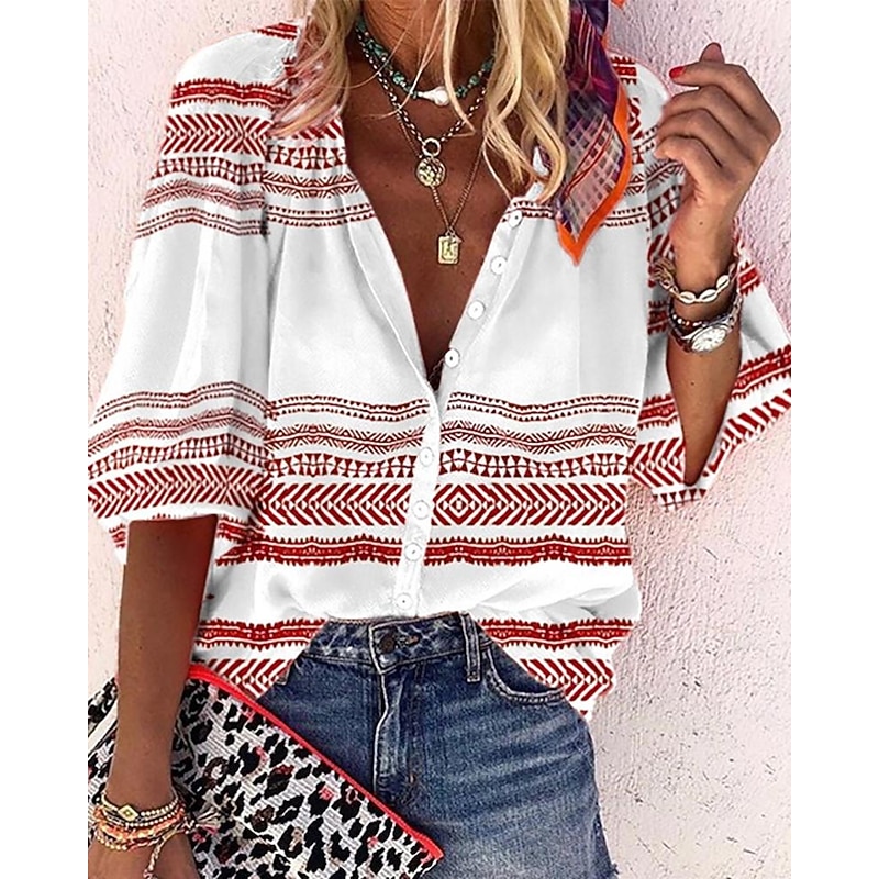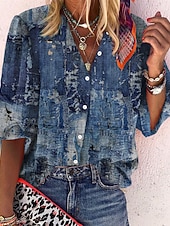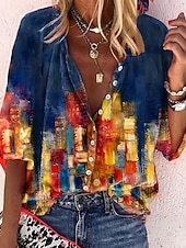 More information about Women's Shirt Blouse White Navy Blue Rainbow Graphic Floral Print Long Sleeve Casual Daily Vintage Tropical Shirt Collar Regular Floral S