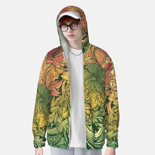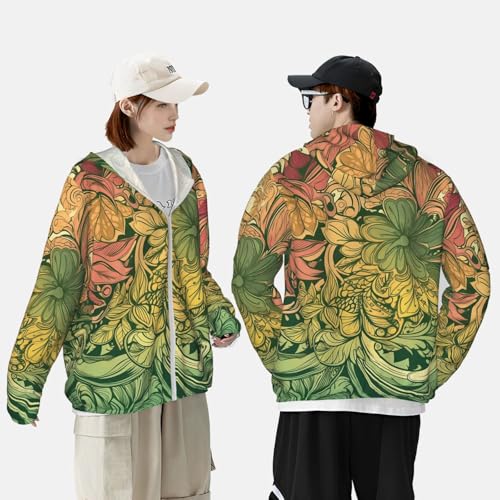 HOT ! Sun Protection Hoodie Shirt Vine Flowers UPF 50+ Long Sleeve Outdoor Rash Guard for Men Women