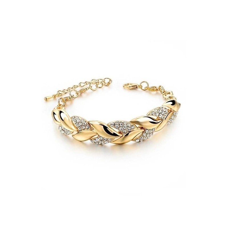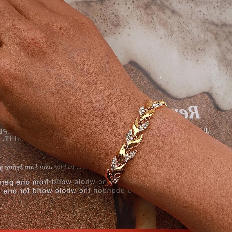 : Crafted from high-quality alloy, this women's bracelet boasts an elegant and luxurious feel. The interwoven leaf design is enhanced by the use of durable, lightweight alloy, making it ideal for both daily wear and special occasions.