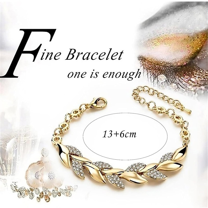 More information about Women's Bracelets Fashion Full Diamond-Gold Leaf Bracelet Alloy Zirconia Jewelry for Girlfriend Valentines Mothers Jewelry Gifts