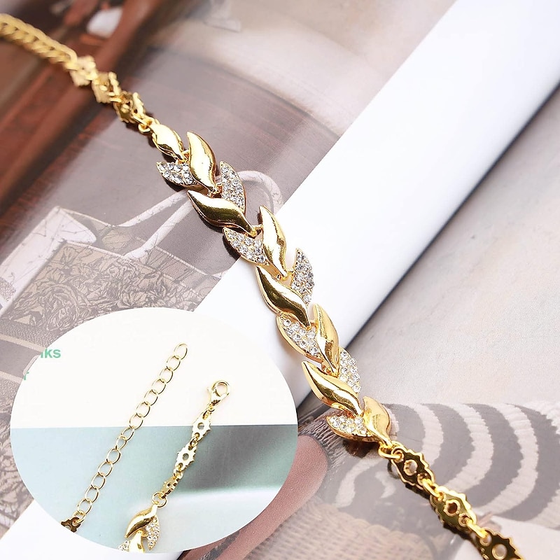 : The bracelet's adjustable chain and secure clasp ensure a comfortable and customizable fit for various wrist sizes. The attention to detail in the rhinestone embellishments and the classic leaf design give it a timeless elegance.