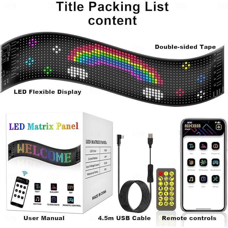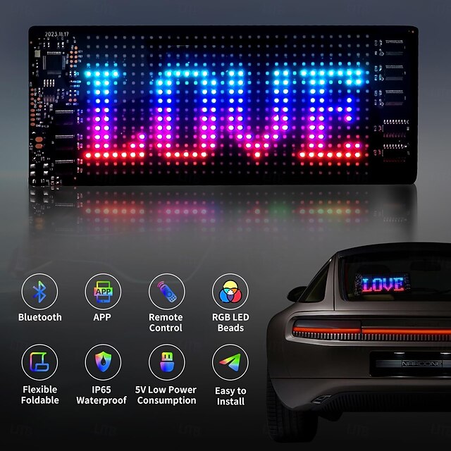$45.99 - Smart Lights Programmable Car Led Sign Flexible Scrolling Bright LED Sign for Car Bluetooth APP RGB Animations Text Graffiti Message Pattern Advertising With Remote Controls for Car Store Bar 2025. Shop for cheap Decorative Lights online? Buy at lightinthebox.com on sale today!