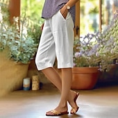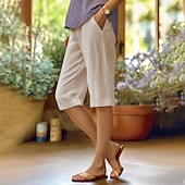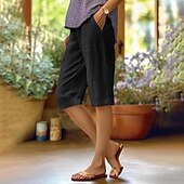More information about Women's Cotton Linen Pants Slacks Fashion Streetwear Knee Length Natural Plain Pocket Outdoor Comfortable Street Daily Wear Going out Light Sky Blue Black White Army Green Summer Regular Fit