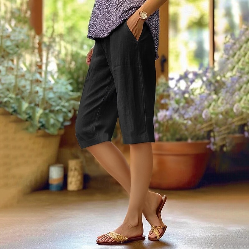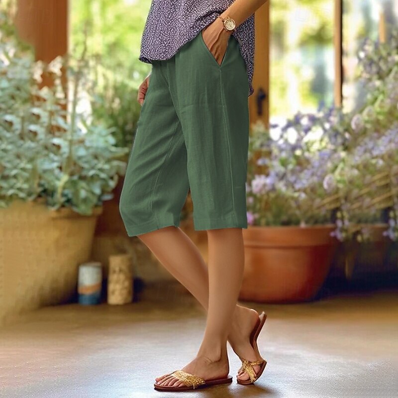 Women's Cotton Linen Pants Slacks Fashion Streetwear Knee Length Natural Plain Pocket Outdoor Comfortable Street Daily Wear Going out Light Sky Blue Black White Army Green Summer Regular Fit 3