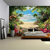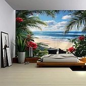 More information about A Seaside Plant Landscape Hanging Tapestry Mural Art Large Tapestry Mural Decoration Photo Background Carpet Curtain Home Bedroom Living Room Decoration