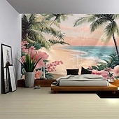 A Seaside Plant Landscape Hanging Tapestry Mural Art Large Tapestry Mural Decoration Photo Background Carpet Curtain Home Bedroom Living Room Decoration 1
