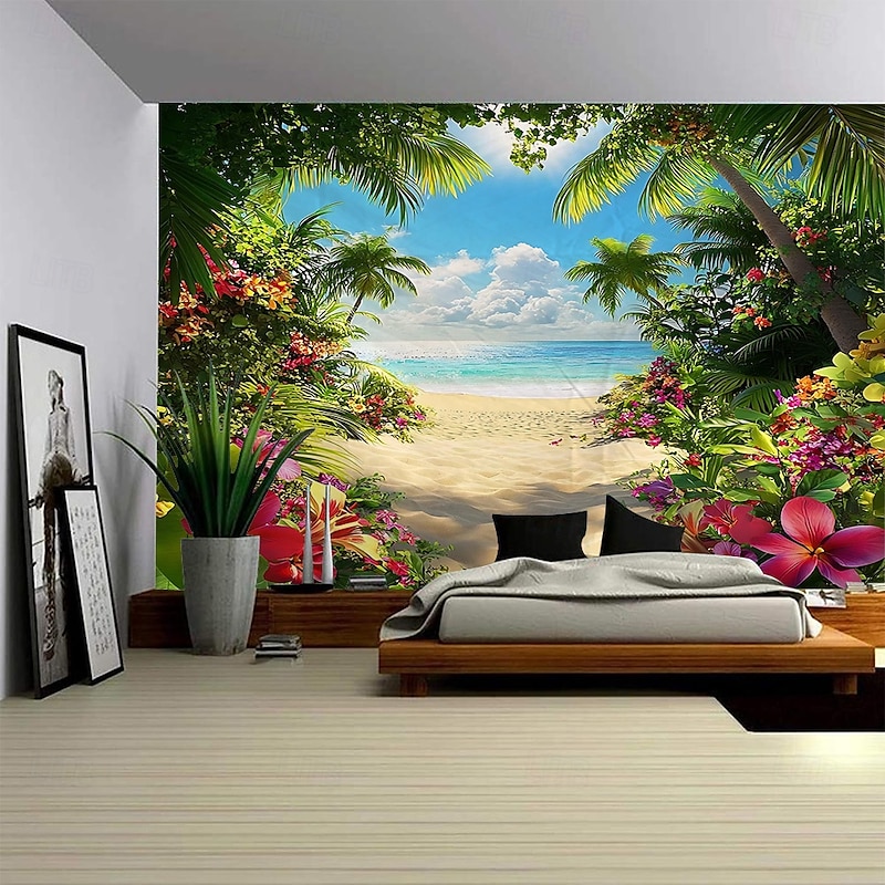 A Seaside Plant Landscape Hanging Tapestry Mural Art Large Tapestry Mural Decoration Photo Background Carpet Curtain Home Bedroom Living Room Decoration 9